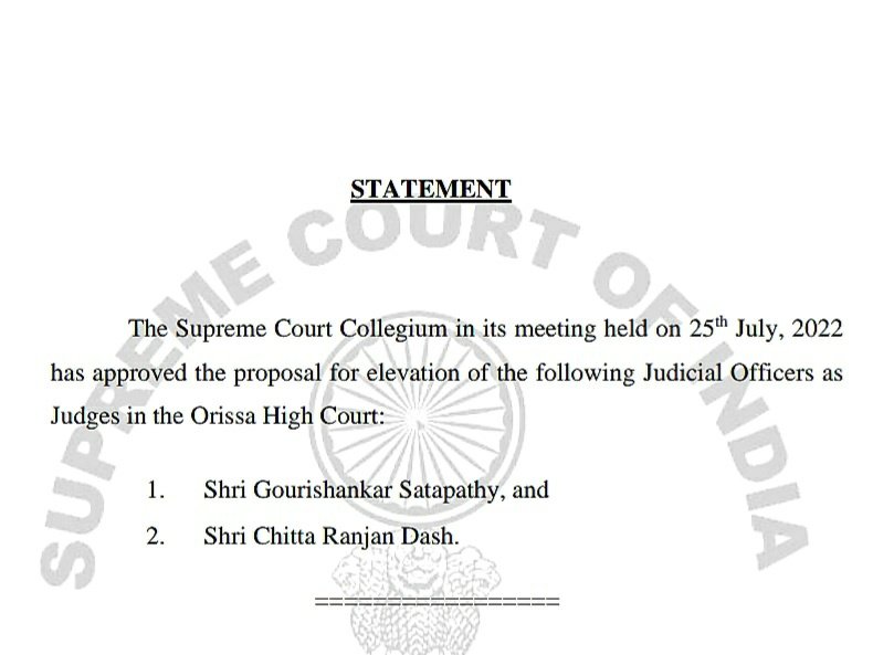 Cuttack: The Supreme Court Collegium on Monday approved three names for elevation as judges of the Orissa High Court.