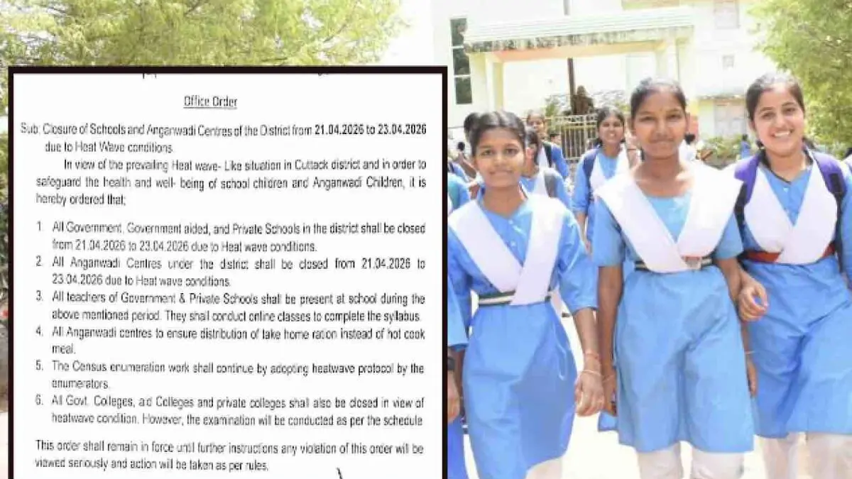 Cuttack: Amid the prevailing sultry weather conditions, the Cuttack administration has ordered the immediate closure of all government, aided, and private schools, colleges, and anganwadi centres from April 21 to April 23.