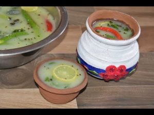 It is prepared in cooked rice, water, curd, roasted cumin powder and salt.