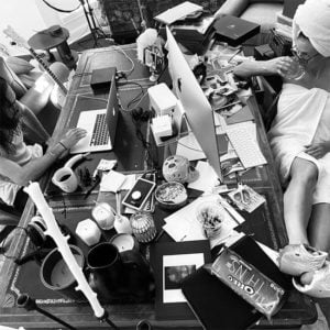 7. Heidi Klum works wrapped in her bath towel with things scattered all around on her work desk. Husband Tom Kaulitz’s side of desk looks much cleaner.