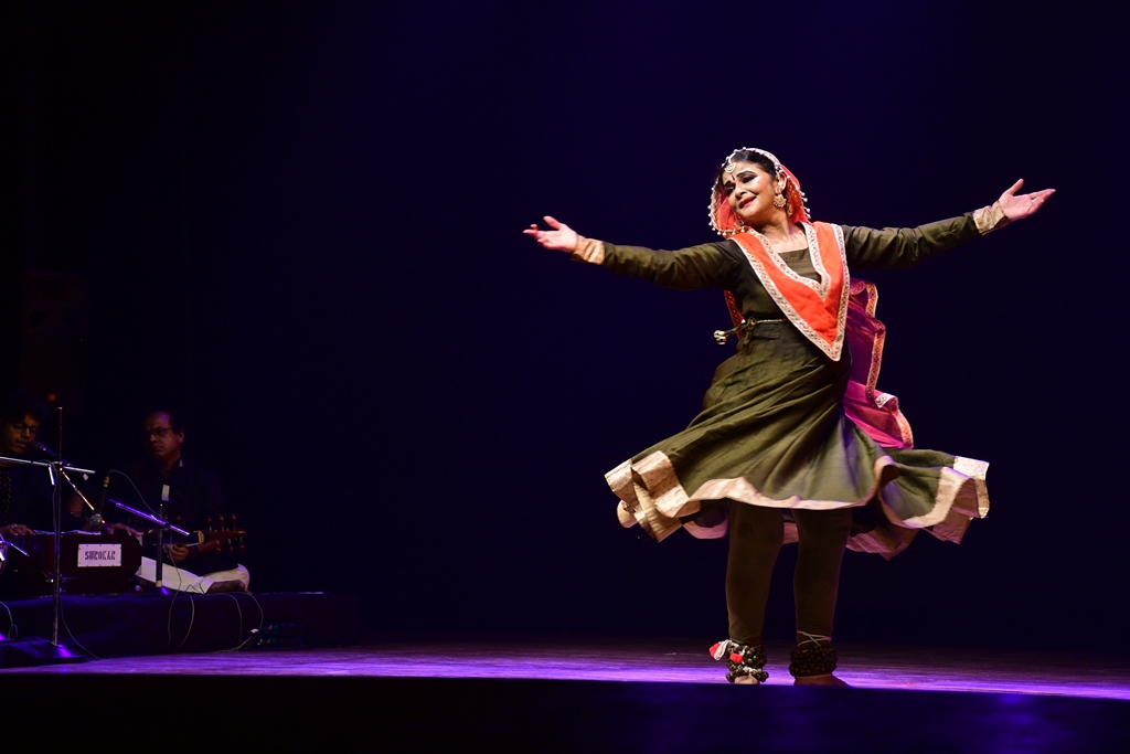 The programme commenced with a solo Kathak dance recital by Shila Mehta of the Lucknow Gharana and the founder-director of Nupur Zankar Academy of Performing Arts and Research Centre, Mumbai. She was accompanied on the live orchestra by Sunando Mukherjee on the Sarod, Vivek Mishra and Amitangshu Kumar Brahma on the Tabla, and Jaydeep Sinha on Vocals.