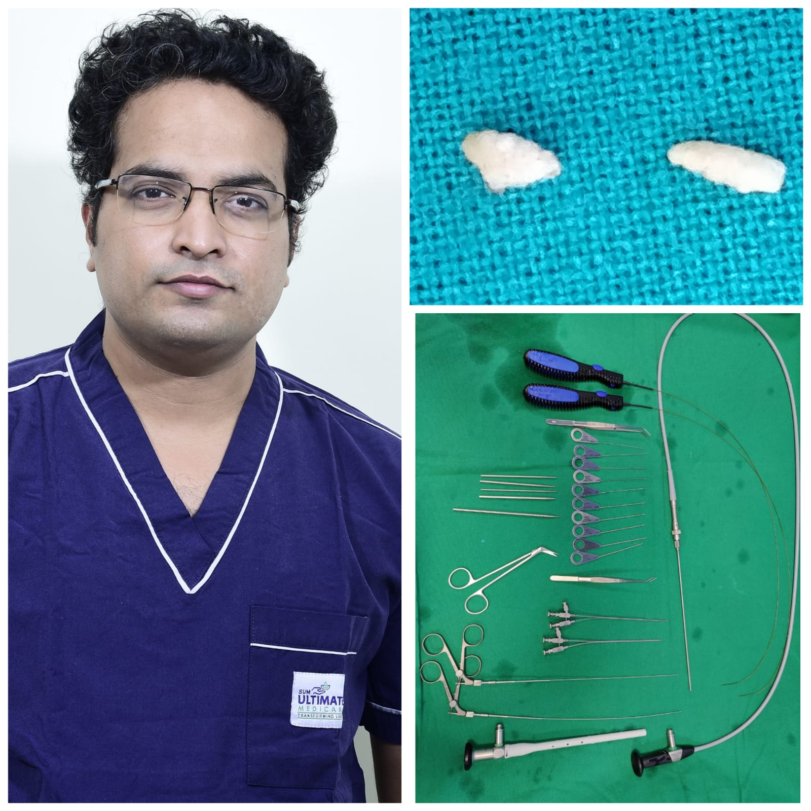Dr Radhamadhab Sahu, Head of ENT and Skull Base surgery in the hospital, recently removed stones from the submandibular gland duct using Sialoendoscopy and made the gland functional again in a young adult patient.