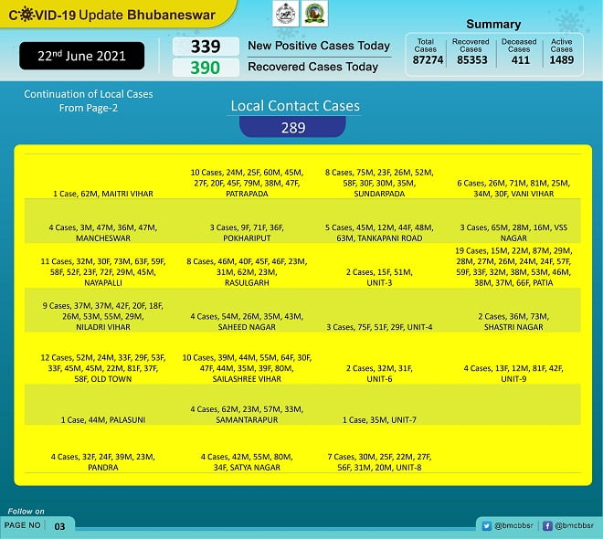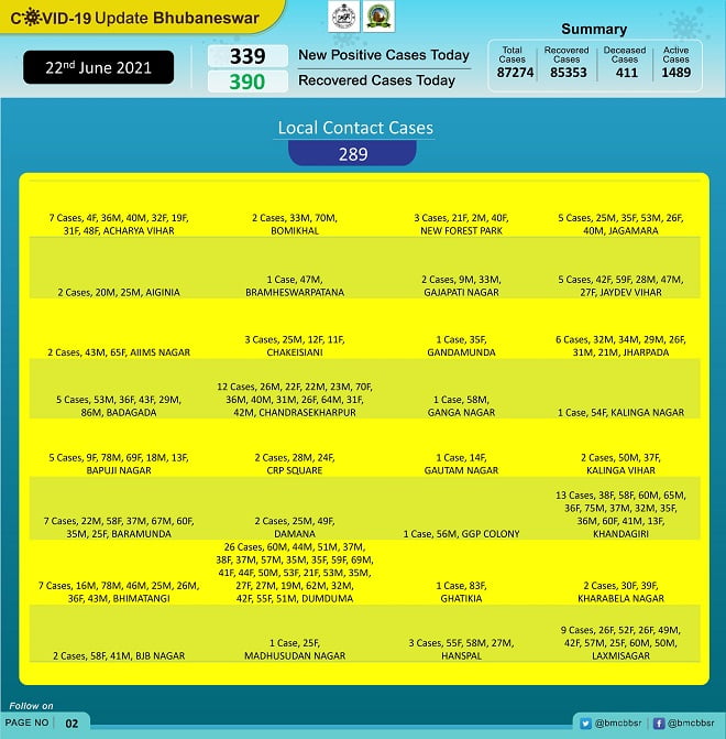 Of the new cases, 50 were from quarantine and 289 were local contacts, tweeted Bhubaneswar Municipal Corporation.