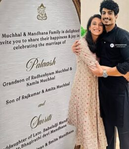 New Delhi: Pictures of a wedding card, with the cricketer Smriti Mandhana and her filmmaker beau Palash Muchhal’s name printed on it has sent internet into a tizzy.