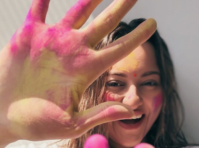 Meanwhile, dressed in a white ethnic kurti, with gulala on her face and hands, Sonakshi looked happy in the pictures which she shared on her Instagram handle.