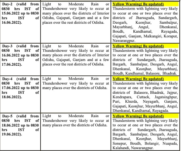 The regional centre, on the other hand, has issued yellow warning for thunderstorm and lighting for several parts of Odisha till 8.30 am on June 19.