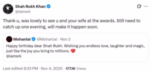 — Shah Rukh Khan (@iamsrk) November 4, 2025