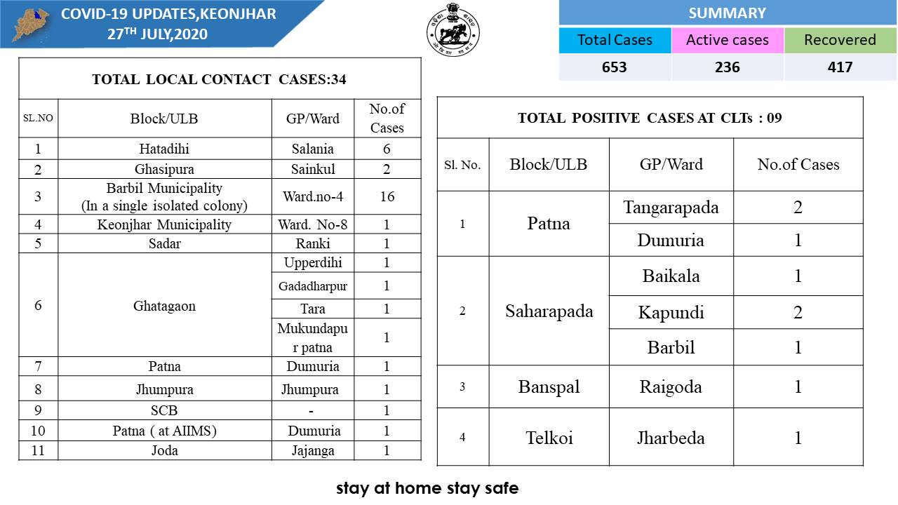 With 417 recoveries, Keonjhar district has 236 active cases at present.
