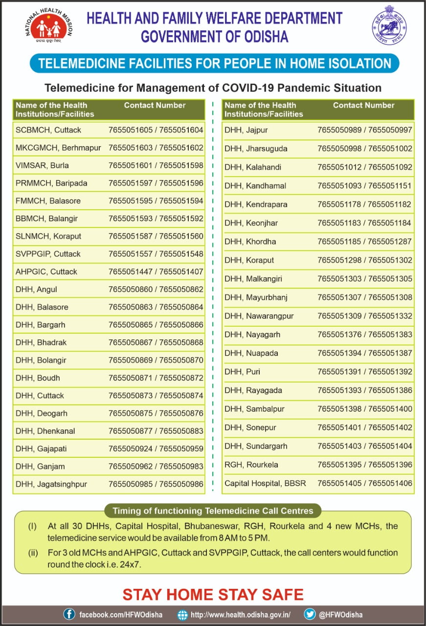 Bhubaneswar: The Odisha government has launched telemedicine services for people undergoing home isolation in the state amid the COVID-19 second wave.