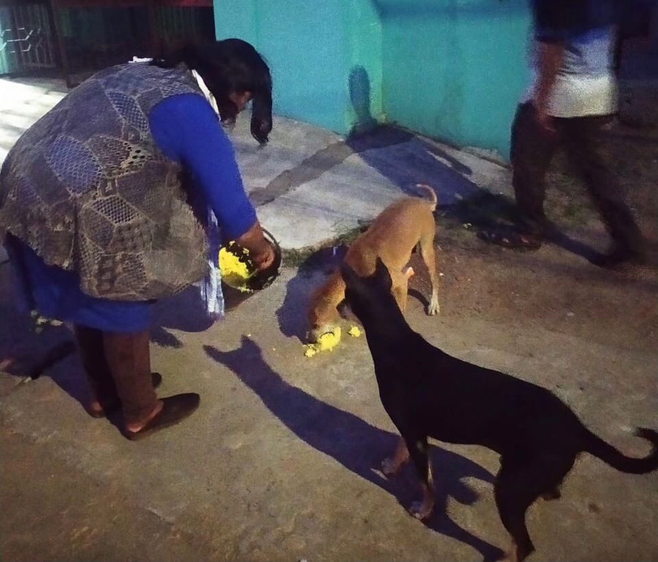 She not only ensures that the dogs, cats and cows do not have to remain hungry, but also takes care of them in every way.