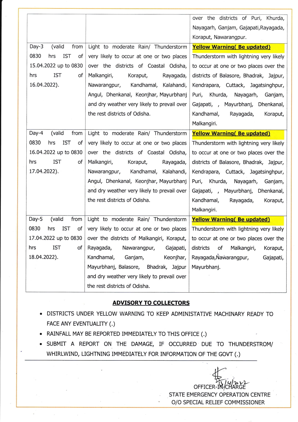 Thunderstorm & Lightning Warning For These Odisha Districts Till April 18