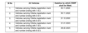 Bhubaneswar: The timeline for affixation of high-security registration plates (HSRP) has been extended in Odisha till February 2023.