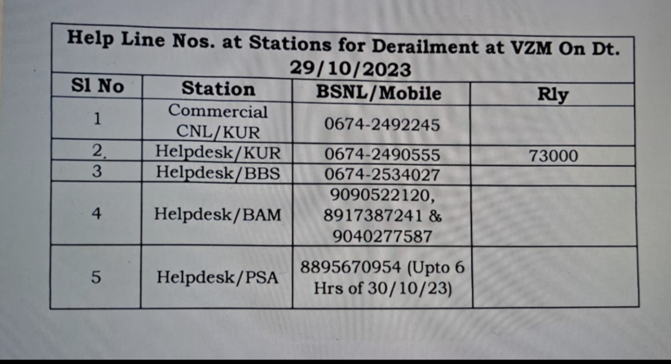 The ECoR has also arranged for free bus service to take stranded passengers up to Srikakulam and Vizianagaram. Food and water also distributed to the passengers of affected trains.