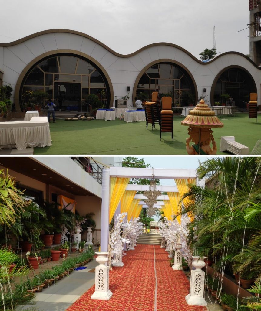 This venue is located at the other end of the city near Nandankanan. It has an air-conditioned hall along with an outdoor space where starters are served. The capacity of the hall is 700.