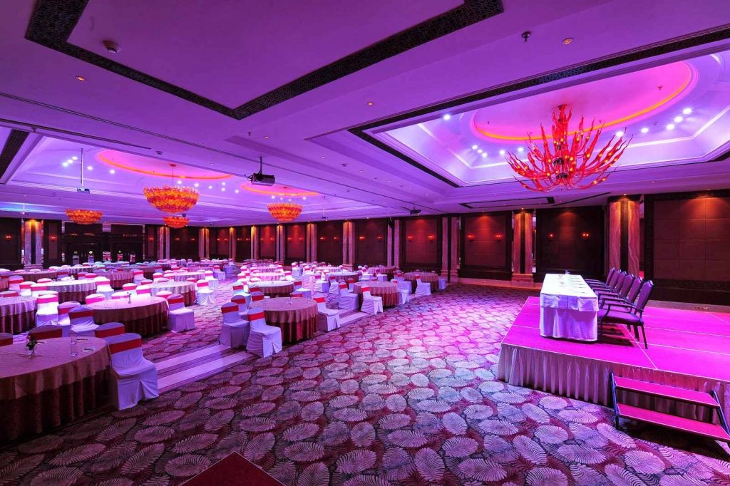 Mayfair is undoubtedly one of the most premium wedding destinations in town. It has multiple options for weddings. The most popular ones are inside Mayfair Convention halls, which are one of the biggest air-conditioned spaces here (capacity – 1200). There are two halls here and both of them have high ceilings. Mayfair Lagoon has an open lawn area along with an air-conditioned hall adjacent to it.