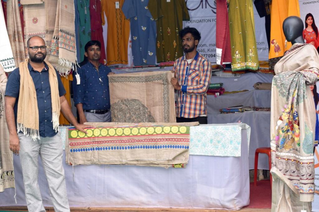 In another stall, a golden colour Tussar silk saree with Pattachitra painting is a centre of attraction. The price of the saree is Rs 22,000.