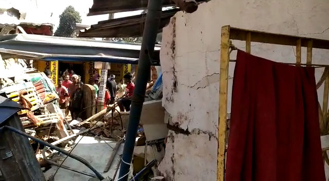 According to sources, the iron ore-laden truck skidded off the road and crashed into the shop after the driver lost control over the wheels.