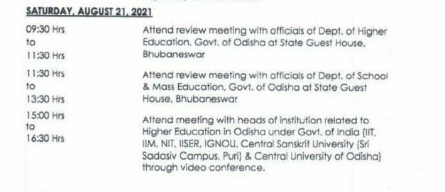 Dharmendra will later hold a video conferencing with heads of IIT, IIM, NIT, ISER, IGNOU, Central Sanskrit University and the Central University of Odisha.