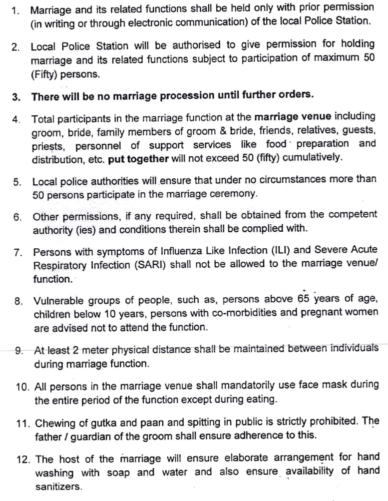 Bhubaneswar: The Odisha government on Saturday issued fresh guidelines for marriage and funeral in the state.