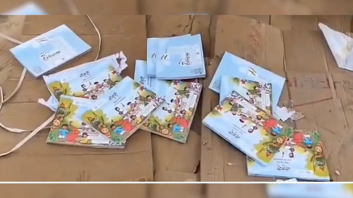 A video shared on social media shows bundles of books, including a class IV textbook printed under Samagra Shiksha scheme along with NCERT.