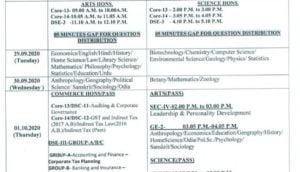 Releasing the schedule of the examinations, the university stated that the students who have enrolled in Plus III Degree (CBCS) 1st Semester Examination 2017 (2017 Regular & 2016 Back Admission Batch) in Arts/Science/Commerce (Pass &Hons) are to appear at the 6th Semester (Regular & Back) University Examination 2020 commencing as per the following time schedule: