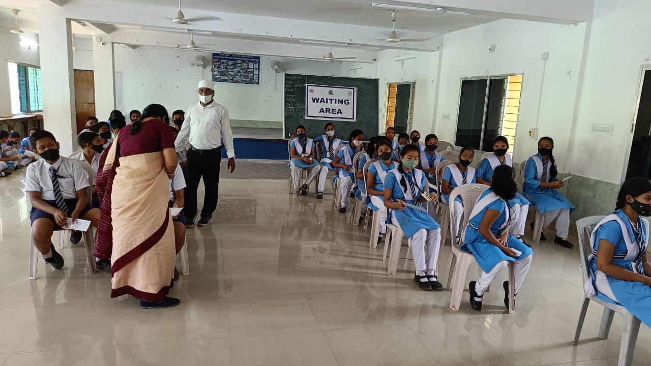 Bhubaneswar: The vaccination of children in the age group of 12-14 years against COVID-19 began at IRC village hospital and high school in the Odisha capital on Wednesday, coinciding with the National Vaccination Day.