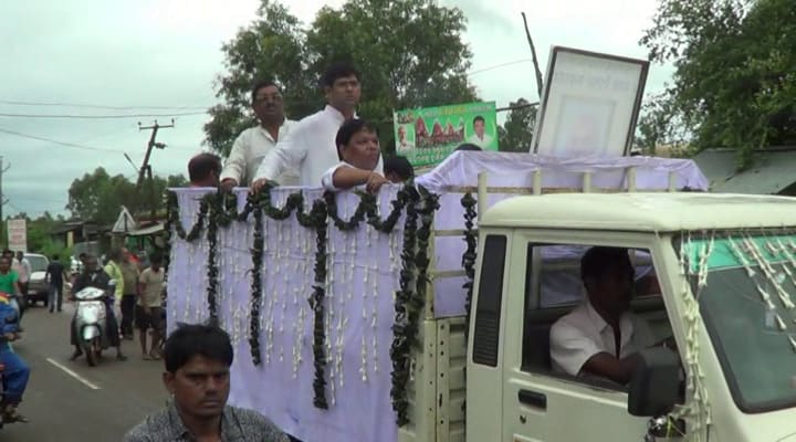 Later, the urn was taken to Gania through Khandapada, Bhapur and Kantilo. BJP workers also started a bike rally along with the procession from Khadapada.