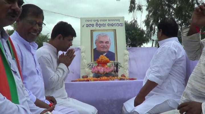 Bhubaneswar: As part of the BJP’s ‘Asthi Kalash Yatra’ across the country, the urn containing the ashes of former Prime Minister Atal Bihari Vajpayee was taken to Nayagarh district in a grand procession on Monday.
