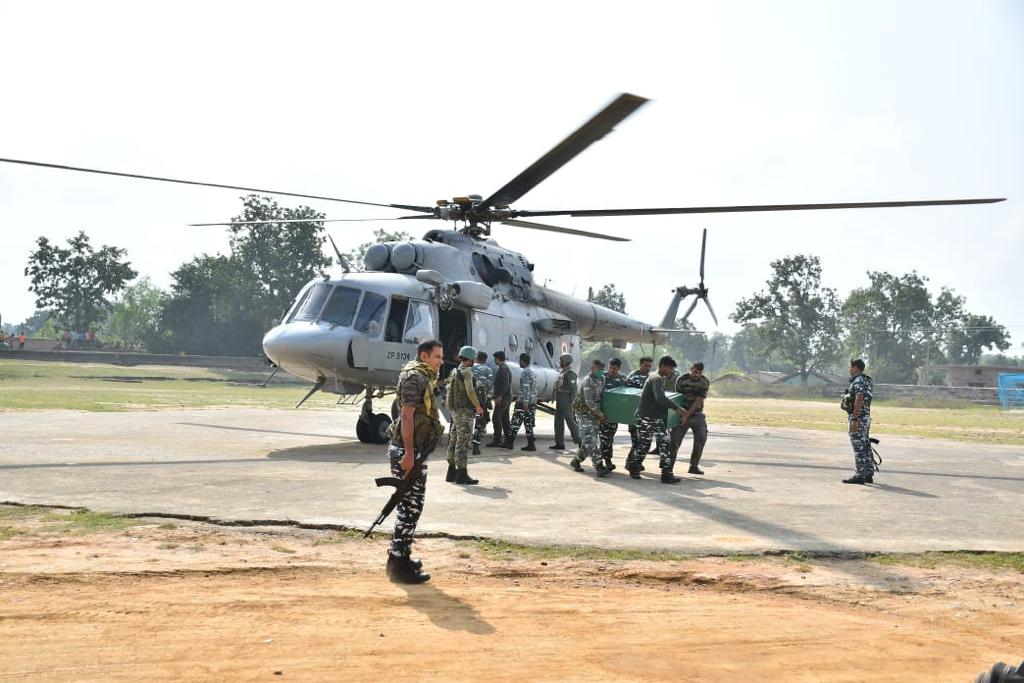 Thereafter, he deftly manoeuvered to avoid the threat zones and landed on a small unprepared area adjacent to the encounter site. He airlifted seven casualties to Raipur and thereafter guided the second helicopter towards the landing site.