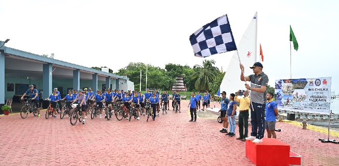 Berhampur: Vedangi Kulkarni, a Guinness World Record holder of being the fastest woman to cycle from Manali to Leh, set out on a journey to circumnavigate the world on a bicycle in a record 110 days from INS Chilika in Odisha on Tuesday.
