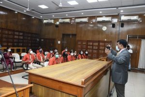 The students were also shown video clips of swearing-in ceremony of Judges and explained the procedure involved therein. Video clip of the hearing of one PIL was also played for viewing of the students in the Chief Justice’s courtroom.