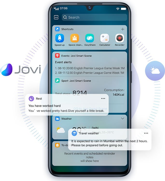 The phone comes with Android 8.1 Oreo with FunTouch OS 4.5. It also comes pre-loaded with an AI assistant called Jovi.