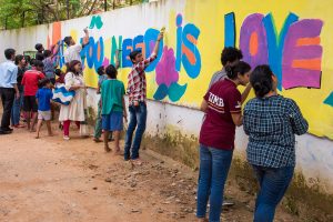 At RSSO, Mural artist Dibyush Jena led the children and volunteers in painting the boundary wall of the institution. At Nilapadia Basti near Damana, dancer Harihar Dash and actress Anubha Sourya engaged 100-odd children.
