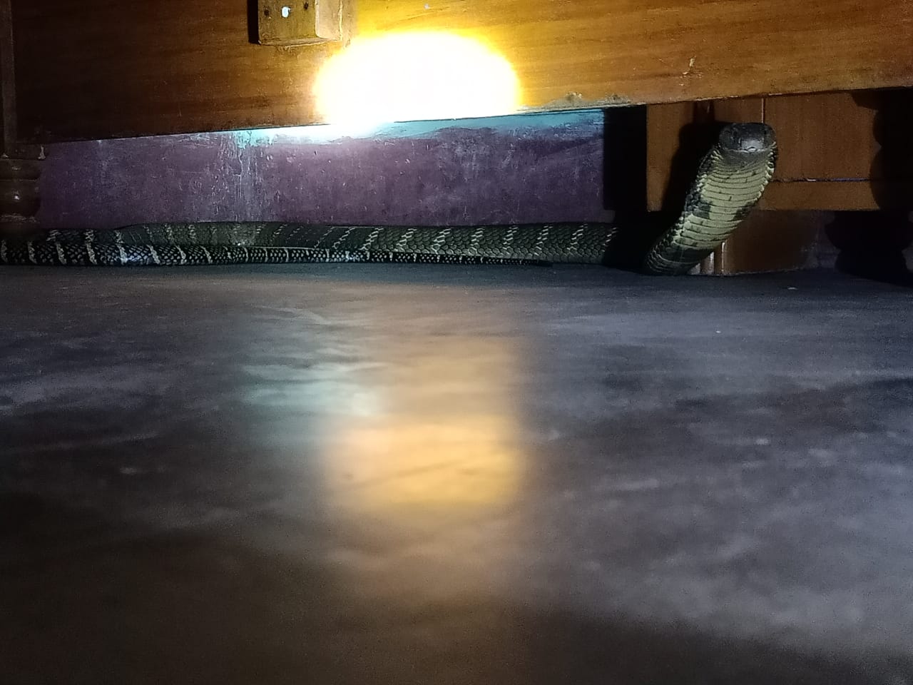 According to sources, the snake was spotted under a wardrobe in the bedroom.