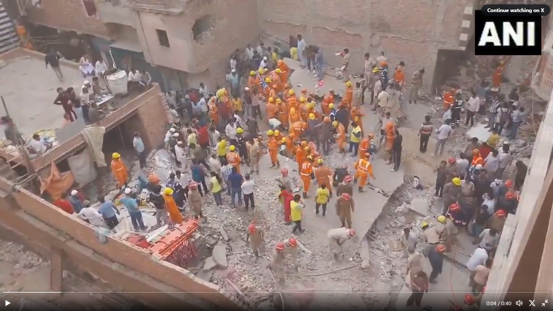 #WATCH | Delhi | 4 people died after a building collapsed in the Mustafabad area; rescue and search operation is underway