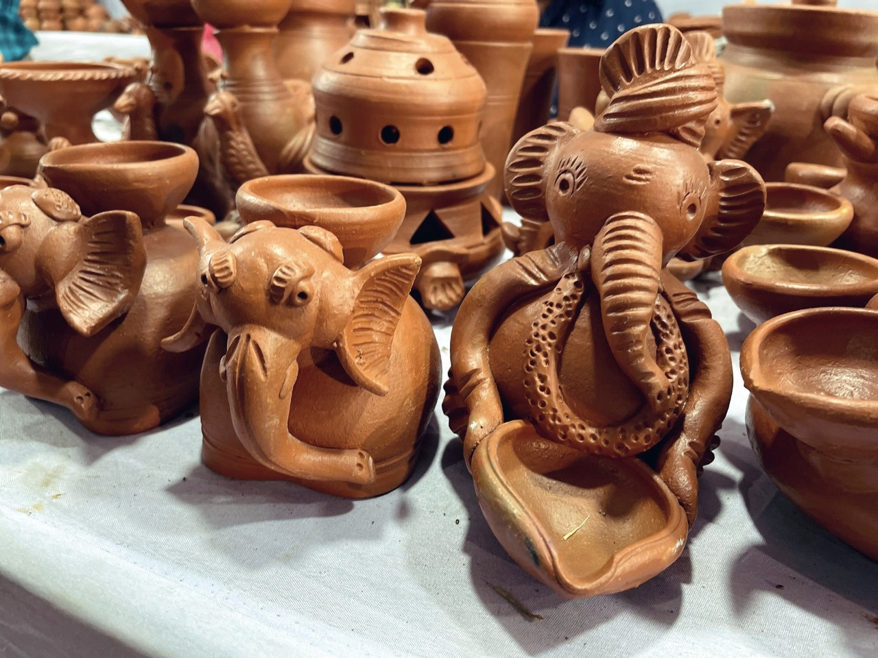 A wide range of clay items like idols of Lord Ganesha, terracotta vases, wall hangings, statues, decorative lamps, cutlery sets, water bottles, and jewellery are also being displayed at the exhibition and the customers are buying them in bulk.
