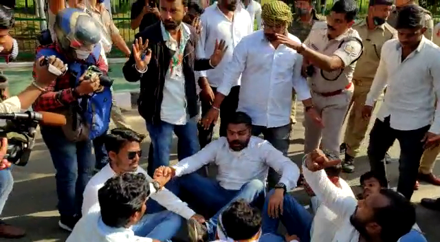 Alleging police brutality, several Congress workers later sat on a dharna near Master Canteen Square and demanded stringent action against the erring cops.