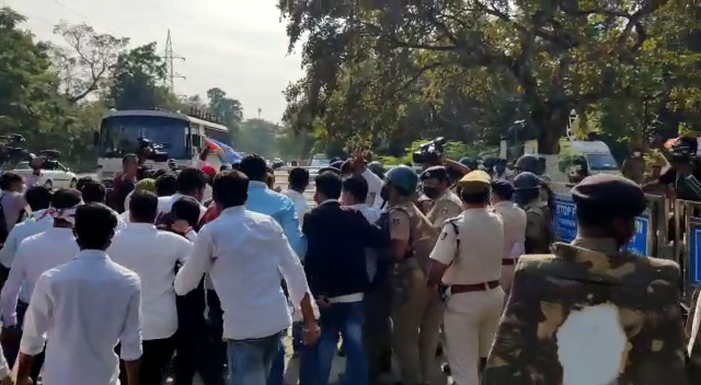 The peaceful agitation turned violent when police intercepted the Congress workers midday, leading to a scuffle. The agitators also pelted the cops with eggs and tomatoes during the face-off. Police then resorted to lathi-large to disperse them and several agitators were also taken into preventive custody.