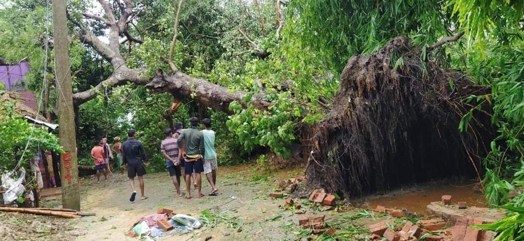 Balasore: Heavy rain accompanied by strong winds due to very severe cyclone Yaas, many trees have been uprooted and several thatched and mud houses damaged in Odisha’s Balasore district.