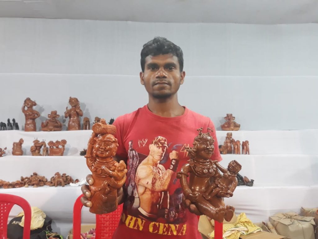 Worth a visit is the stall of Budu Khumbhara from Rayagada, where on display are ‘Dongria’ women and men made out of clay. Extremely beautiful, the artefacts are worth Rs 200 to Rs 300 or more.