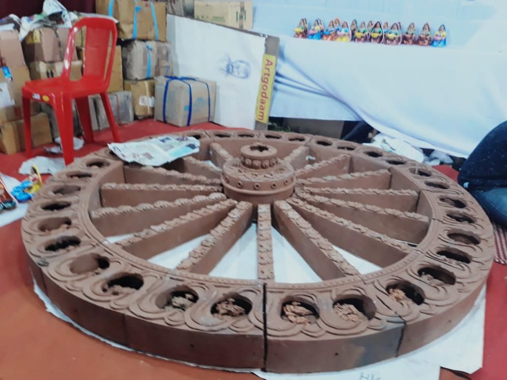 Apart from this, another major attraction is a giant seven feet terracotta wheel, prepared by artist Saroj Rout. It took him six months to complete the whole wheel. “It depicts the 23 ‘besas’ of Lord Jagannath and is very dear to me because I gave it a lot of time, devotion and affection. It is worth around Rs 3 to Rs 3.5 lakh,” he said.