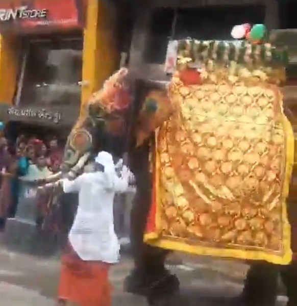 The state government said quick action by mahouts and the forest department helped bring the situation under control. Zoo and forest officials tranquilized the agitated elephant and moved it away from the procession route.