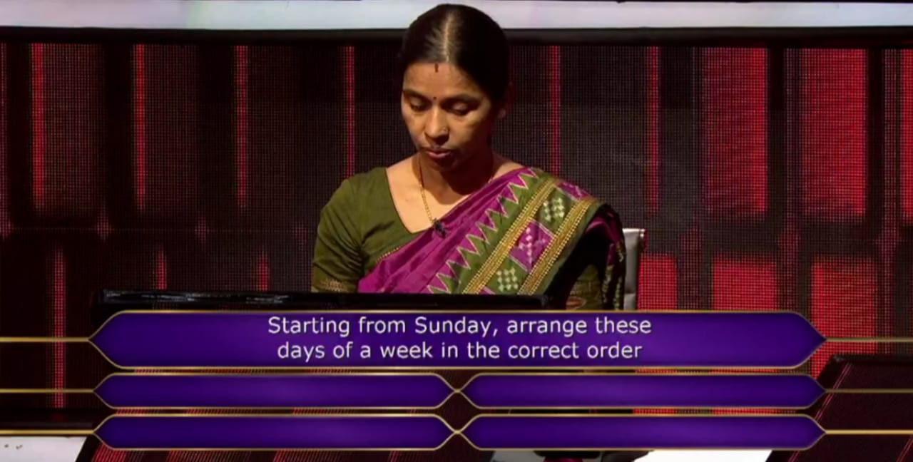 The contestants were asked to arrange these days – Monday, Thursday, Wednesday and Saturday – of a week in the correct order starting from Sunday.