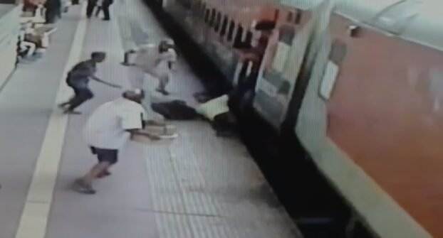 The incident took place at 8.05 am. Md Mujahir from Mirjapur in Westbengal’s Uttar Dinajpur attempted to board Kanyakumari–Dibrugarh Express bound for Kishanganj even as it started moving. However, he slipped on the steps and came perilously close to being crushed between the platform edge and the train’s wheels.