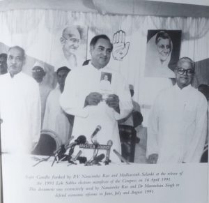 1991 Congress manifesto: He had spent long hours a few weeks before his tragic assassination in preparing the 1991 Lok Sabha election manifesto, which later provided the foundations for the Rao-Manmohan Singh reforms of June-July 1991.