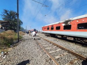 A medical team, paramedical staff and senior railway officers rushed to the site to take stock of the situation. The cause of the fire is being probed.