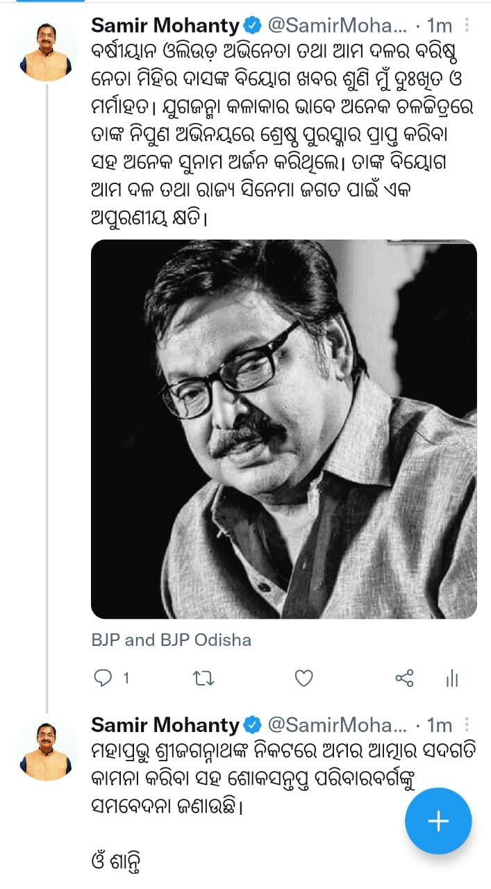 Shri #MihirDas. It’s a huge setback for Odisha film industry. He was a versatile actor with a huge fan following across generations. My heartfelt condolences to his family, friends and fans.? pic.twitter.com/9IIpUqLcnY