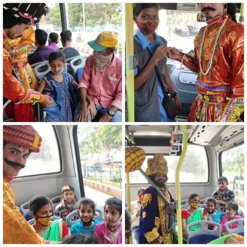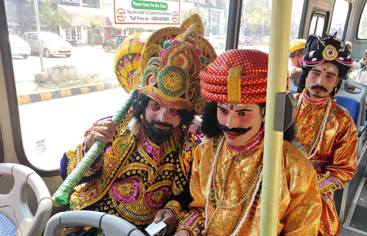 Bhubaneswar: MoBus crew members and commuters were in for a surprise when they saw ‘Yamraj and ‘Chitargupta’ travelling in the buses on Saturday.