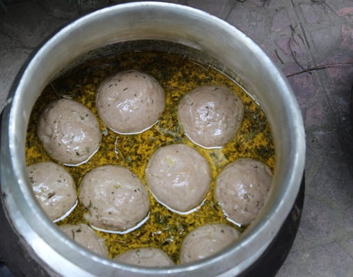 Another reason for trusting only a seasoned hand to handle the Gushtaba meat is also the understanding of the meat and fat ratio 70 (meat):30 (fat). Getting the consistency of the meat right is only one part of the interesting story called Gushtaba. The other skill is in the making. It is first cooked in yakhni (broth), which is the first layer of flavours.