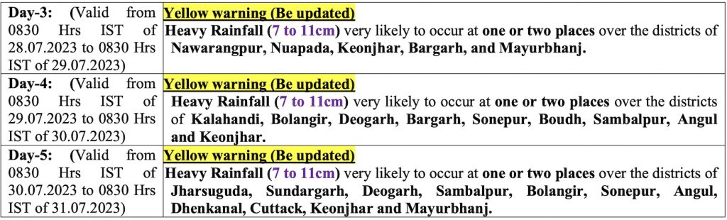 The SOA’s Centre for Environment and Climate (CEC) in Bhubaneswar had earlier forecast widespread rainfall across South Odisha on Wednesday with heavy precipitation at a few places. It had also predicted another low pressure area in the Bay on July 30. It may trigger heavy to very heavy rainfall in north Odisha districts from July 31 to August 3, it added.